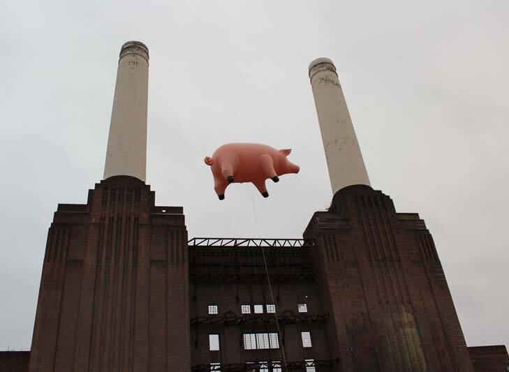 La banda británica Pink Floyd recuperó el globo de helio gigante en forma de cerdo, cuya imagen decoró la portada de su célebre disco Animals (1977).