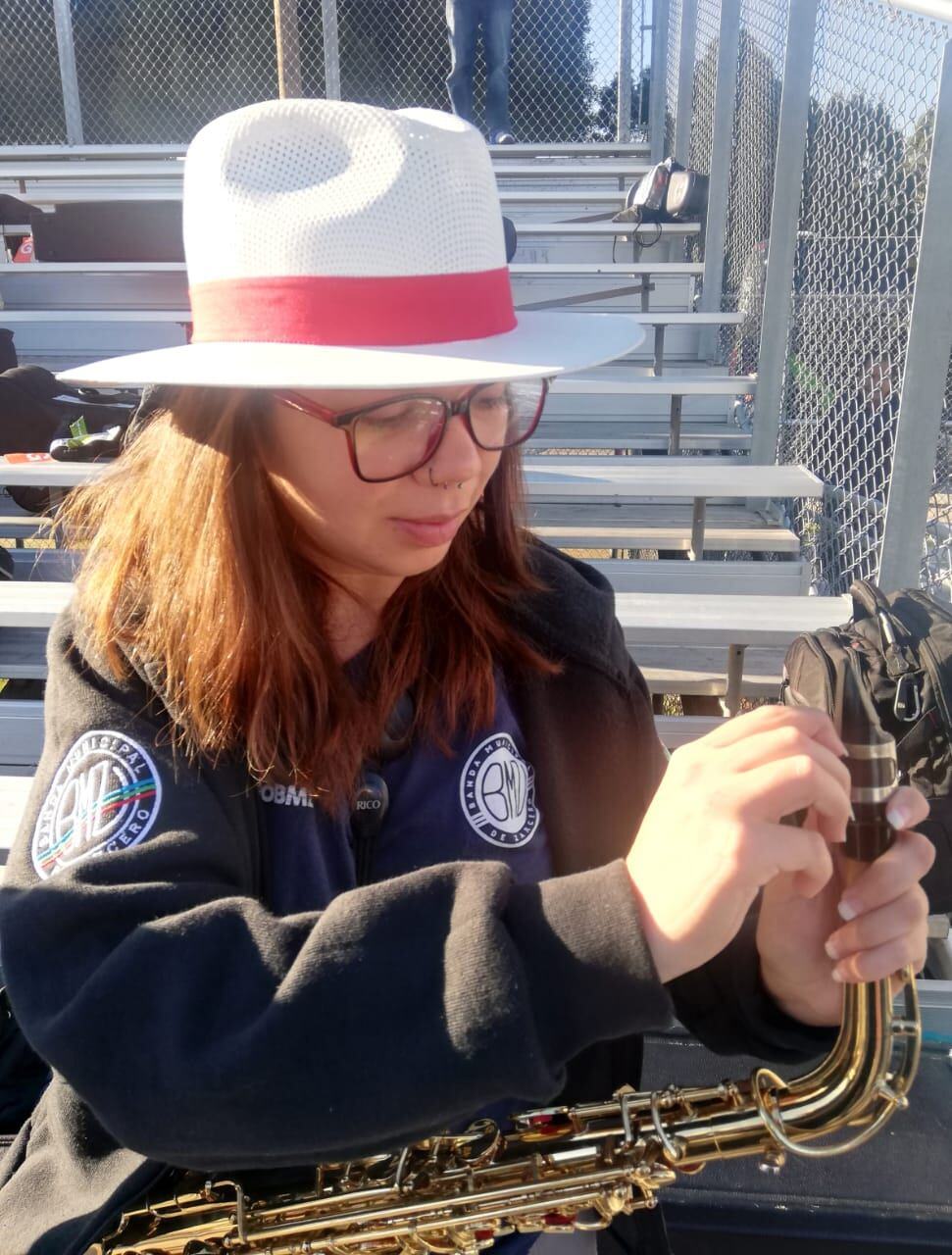 Marcia Salazar tiene 21 años de edad y tres de estar en la banda, específicamente en la sección de folclore. Para ella el sentimiento que le genera esta experiencia es inexplicable.