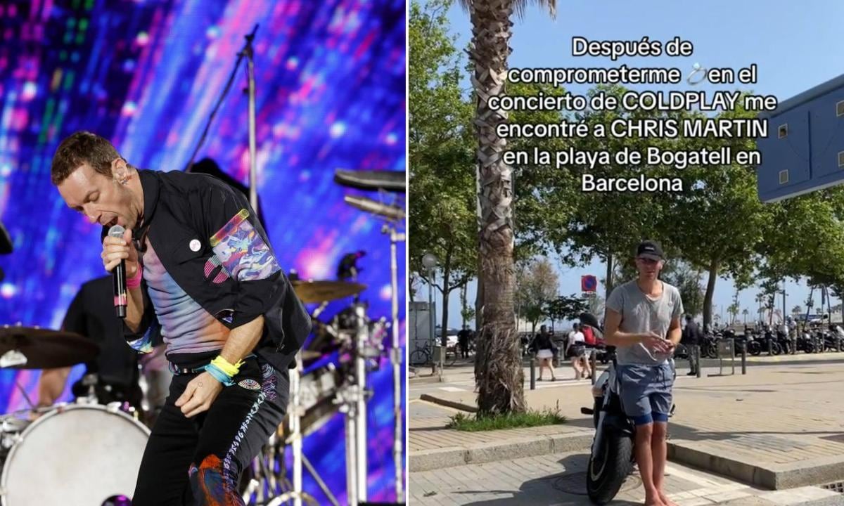 Una usuaria de TikTok publicó un video en el que mostró cuando se encontró con el vocalista de Coldplay, Chris Martin, en la playa Bogatell, en Barcelona, después de comprometerse con su pareja la noche anterior en el concierto de la banda.