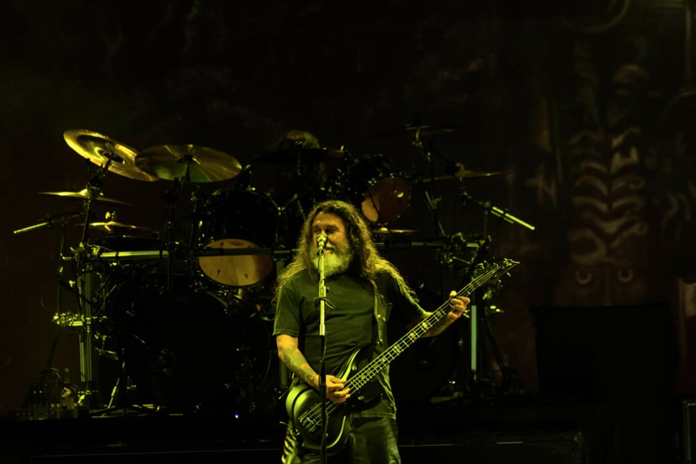 Una sola luz se encendió en el escenario para mostrar a Tom Araya, bajista y vocalista, de origen chileno. El público reventó en aplausos y empezó a cantar “¡Oe, oe, oe, Slayer, Slayer..!”.