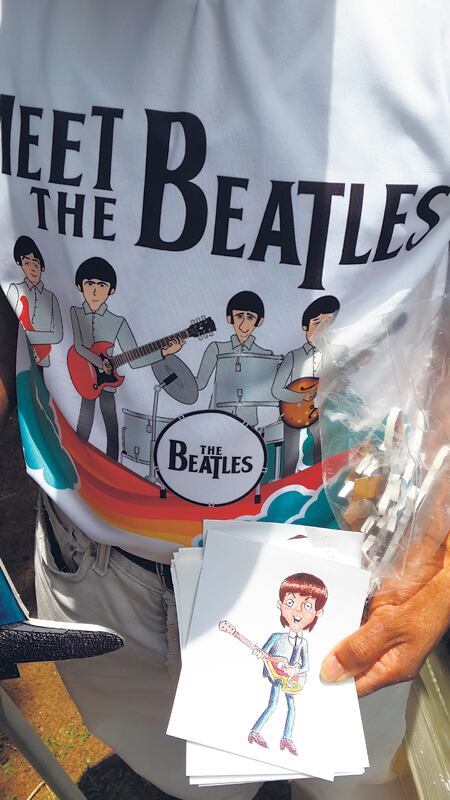 Su llamativa creación artística, que al final resultó ser el adorno de varios recuerdos fotográficos, le servía de publicidad. Luego de prestar su “McCartney” para la foto, el artista gráfico ofrecía unas estampitas en miniatura del ex-Beatle.