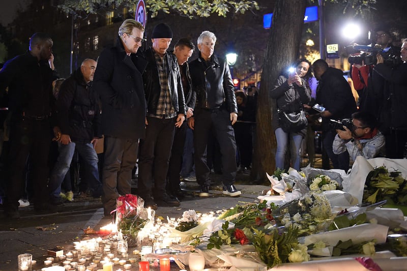 Desde Dublín, Bono dijo que los hombres que mataron a 130 personas "arrebataron vidas, música, paz, pero no podrán robarse el espíritu de la ciudad. Es un espíritu que nuestra banda conoce bien y al cual trataremos de servir cuando regresemos para los conciertos cancelados".