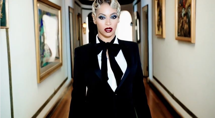 Beyoncé aparece en una especie de mansión gótica con un maquillaje cargado de dramatismo y vistiendo un esmoquín.