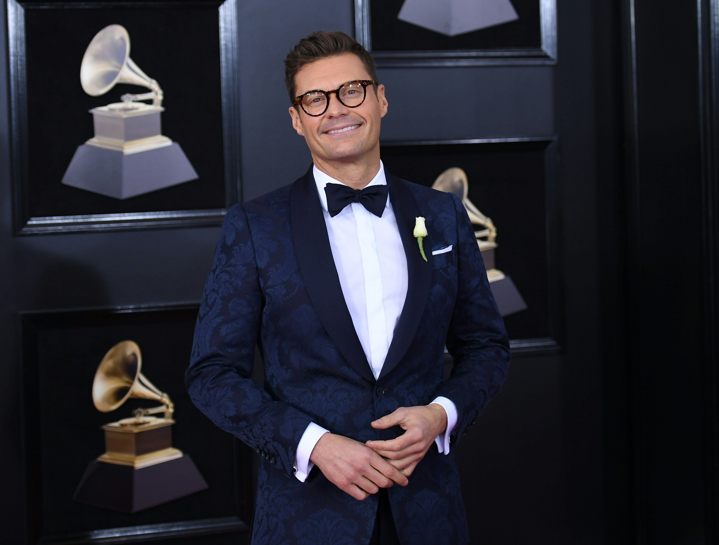 El presentador Ryan Seacrest, del canal E!, optó por un sobrio traje azul, al que incorporó la rosa blanca. Él es uno de los encargados de entrevistar a todas las celebridades en la alfombra roja.