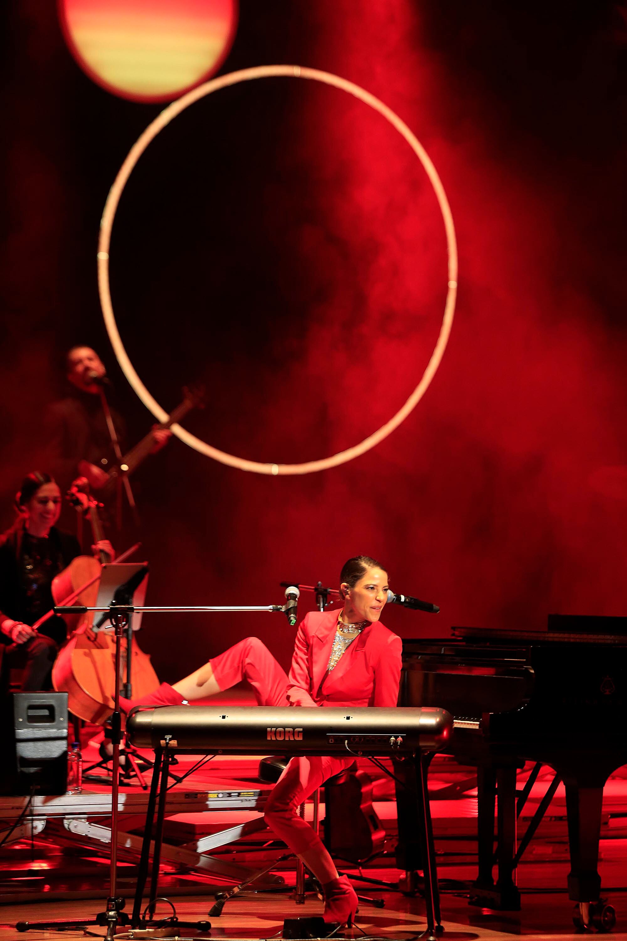 En una perfecta sincronía con sus músicos, la tica presentó en una versión más íntima junto a guitarristas y percusionistas las canciones Drummer Boy y Corazón abierto; pero también mostró su fortaleza femenina cuando acompañada por Sonia Bruno en el chelo y Lourdes Lobo en el violín más Kumary y Sharow las canciones Superpoderes y Bola de cristal.