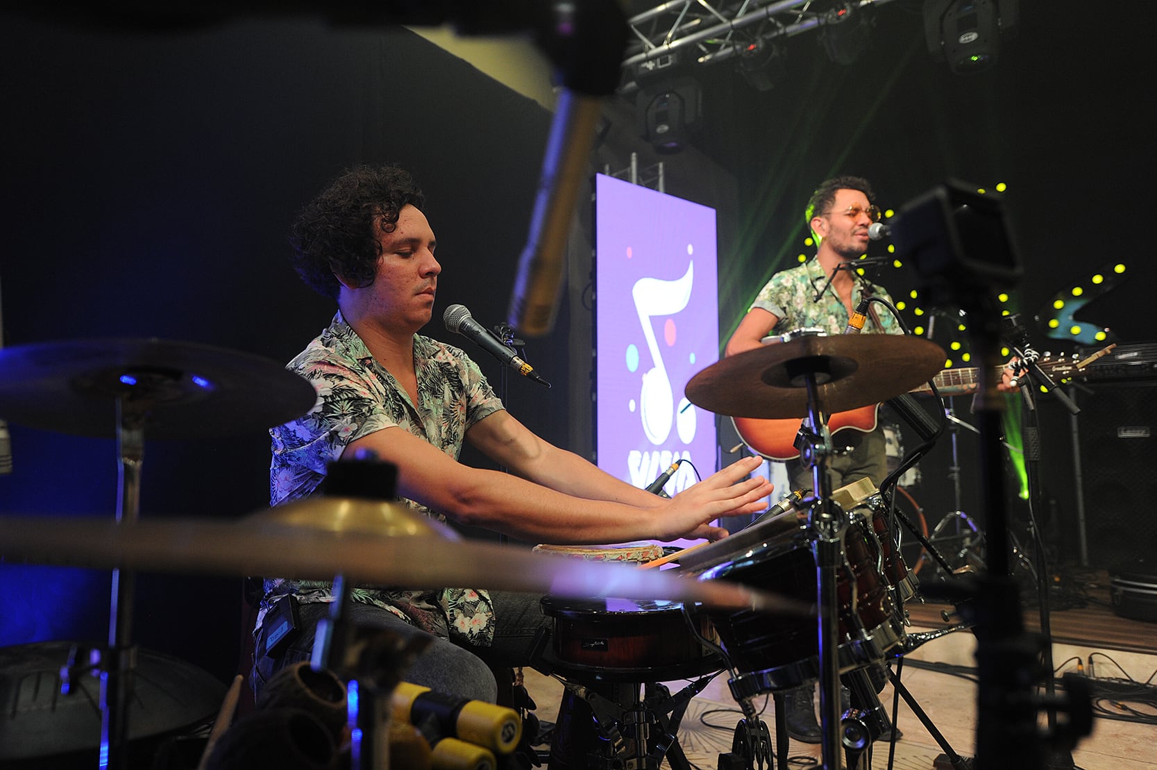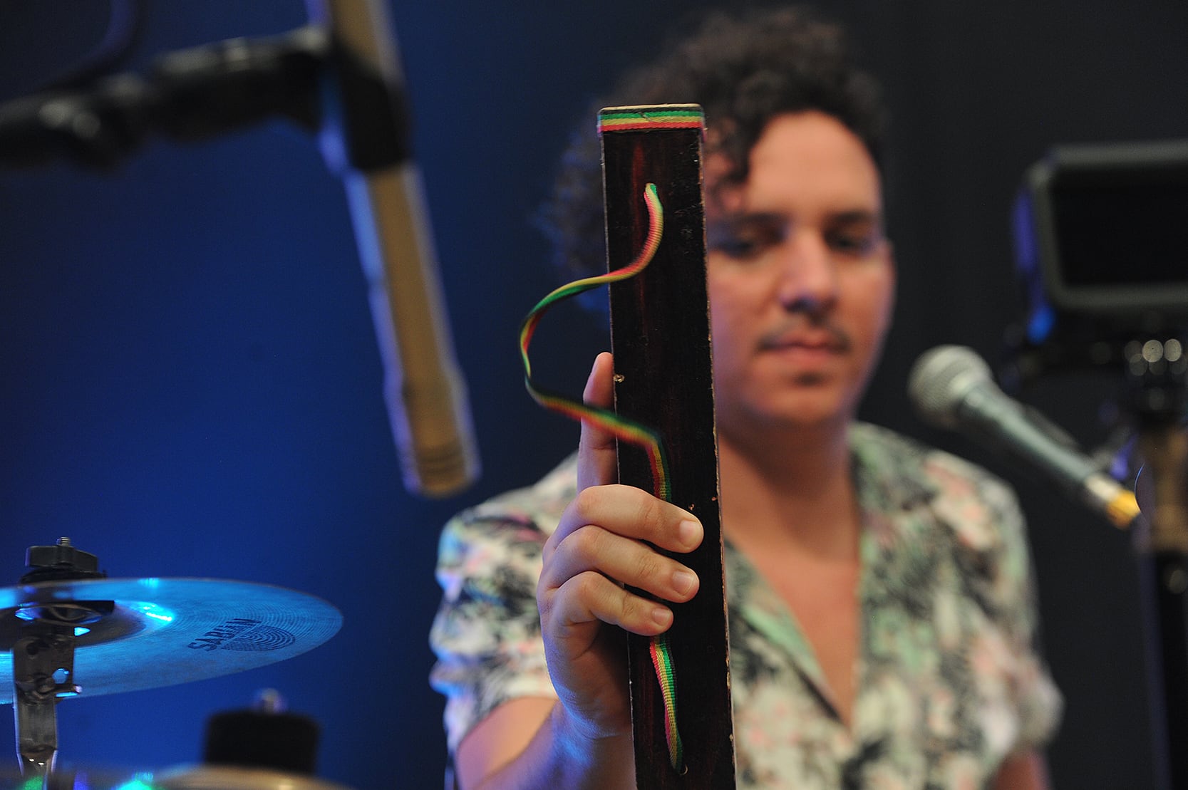 Diego con su ukelele y guitarra electroacústica acompañado por la percusión de David, que comprende handrum, cajón flamenco, bongoes, yembé, shakers, pezuñas, semillas, llaves, sapos, cocos y hasta una quijada de burro; así fue como montaron el espectáculo que llevaron al festival.