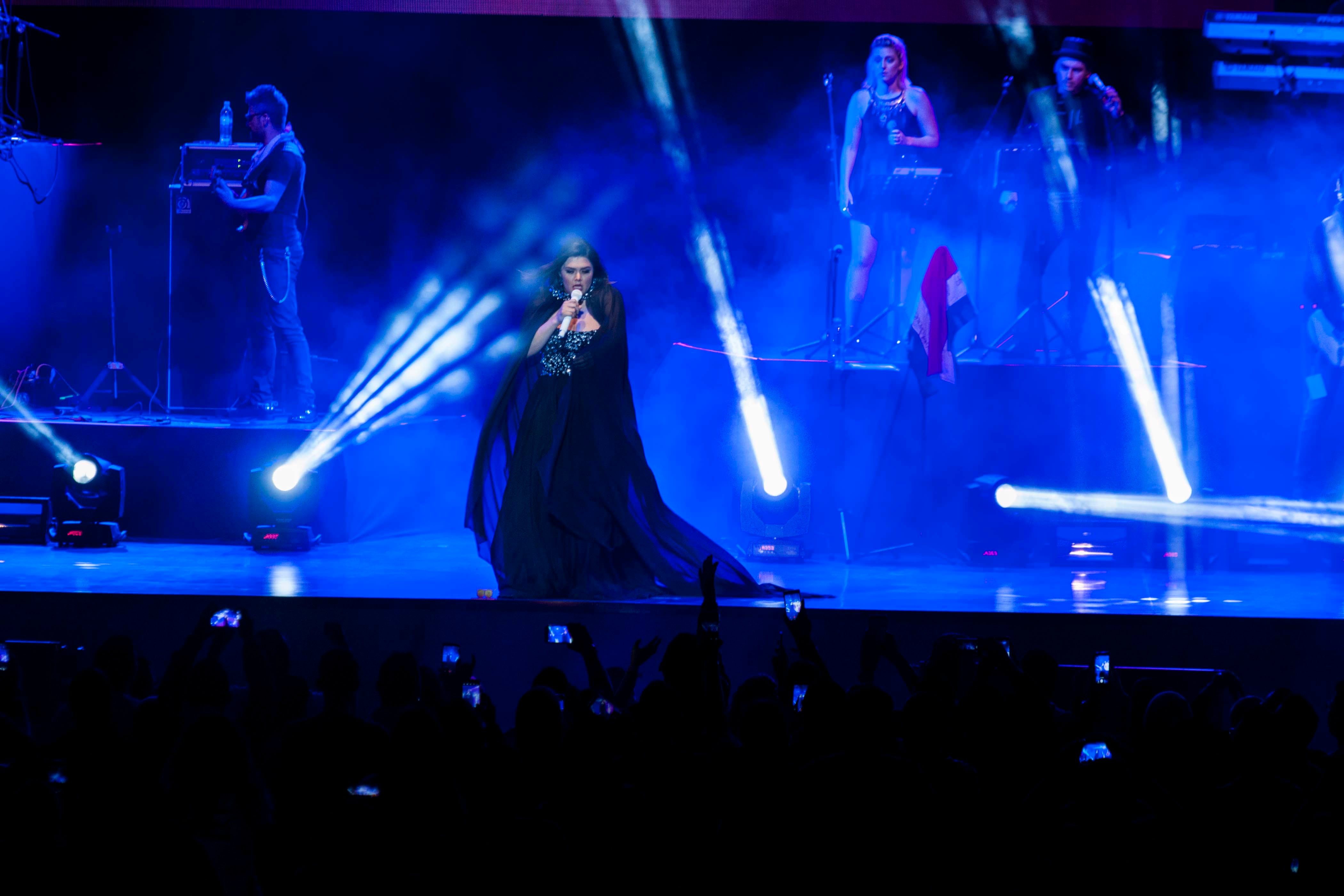 Ataviada con un elegante vestido negro que se volaba por el fuerte y frío viento de la noche, la exparticipante de La Academia saludó a los ticos para después entonar el clásico Ángel. Con su impetuosa voz, Yuridia estremeció a los asistentes cuando con el cover de Lo que son las cosas le cantó a todos aquellos que han sufrido por un “desamor”.