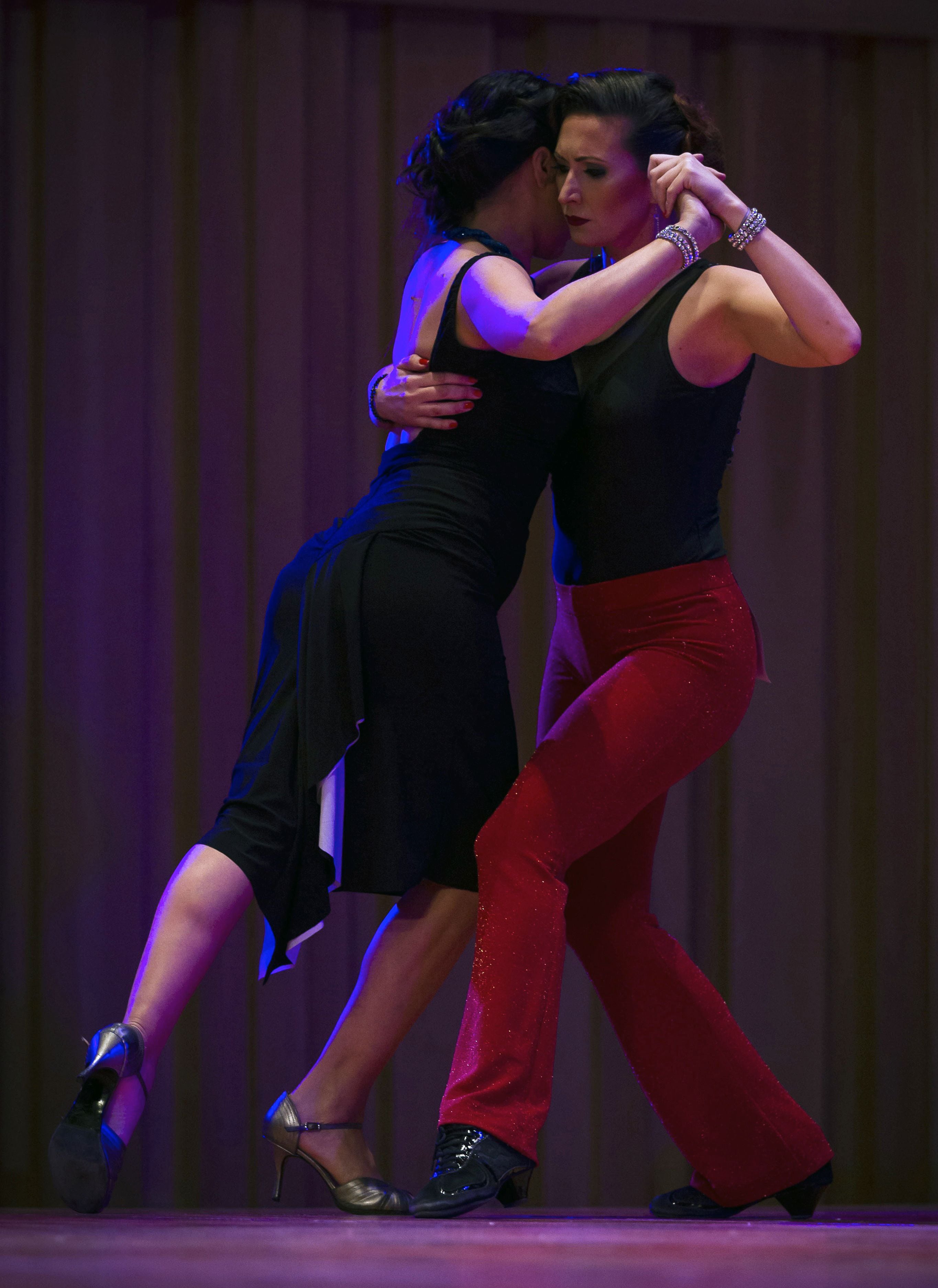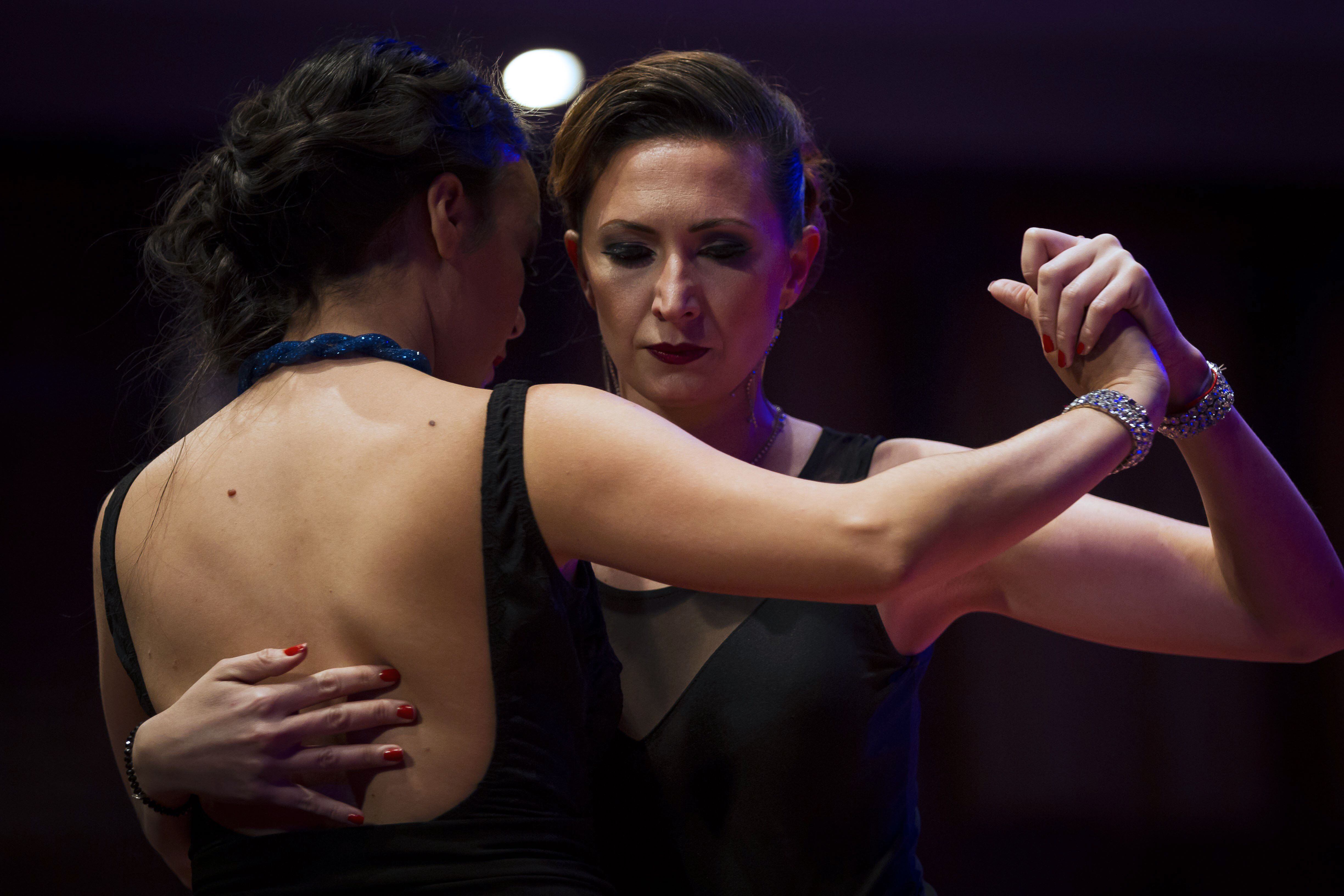 Suena un tango. Las parejas se abrazan y danzan entrelazadas, en un diálogo mudo donde él guía y ella se deja llevar, pero en Argentina el "tango queer" se baila sin importar el género con un audaz viceversa de roles por el placer de bailar.