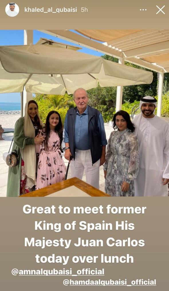 “Muy bueno conocer al rey emérito, su majestad Juan Carlos hoy durante el almuerzo”, publicó Al Qubaisi en Instagram.