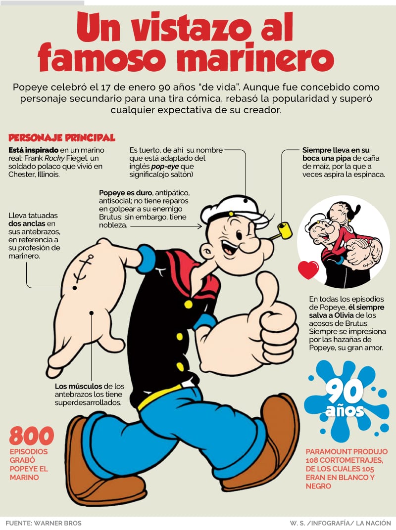 El animado, ícono de la cultura pop, cumplió el pasado 17 de enero 90 años desde que su creador, el caricaturista estadounidense Elzie Crisler Segar, lo dibujó para ponerlo a circular en la tira cómica Thimble Theatre del rotativo The New York Evening Journal.