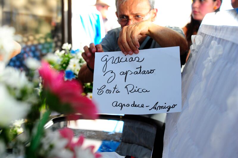 Lágrimas y aplausos. Tras separarse de la afición, globos de colores blanco, azul y rojo aguardaban a Pilo para, ahora sí, darle el último adiós en el Camposanto La Piedad, en San Blas de Cartago.