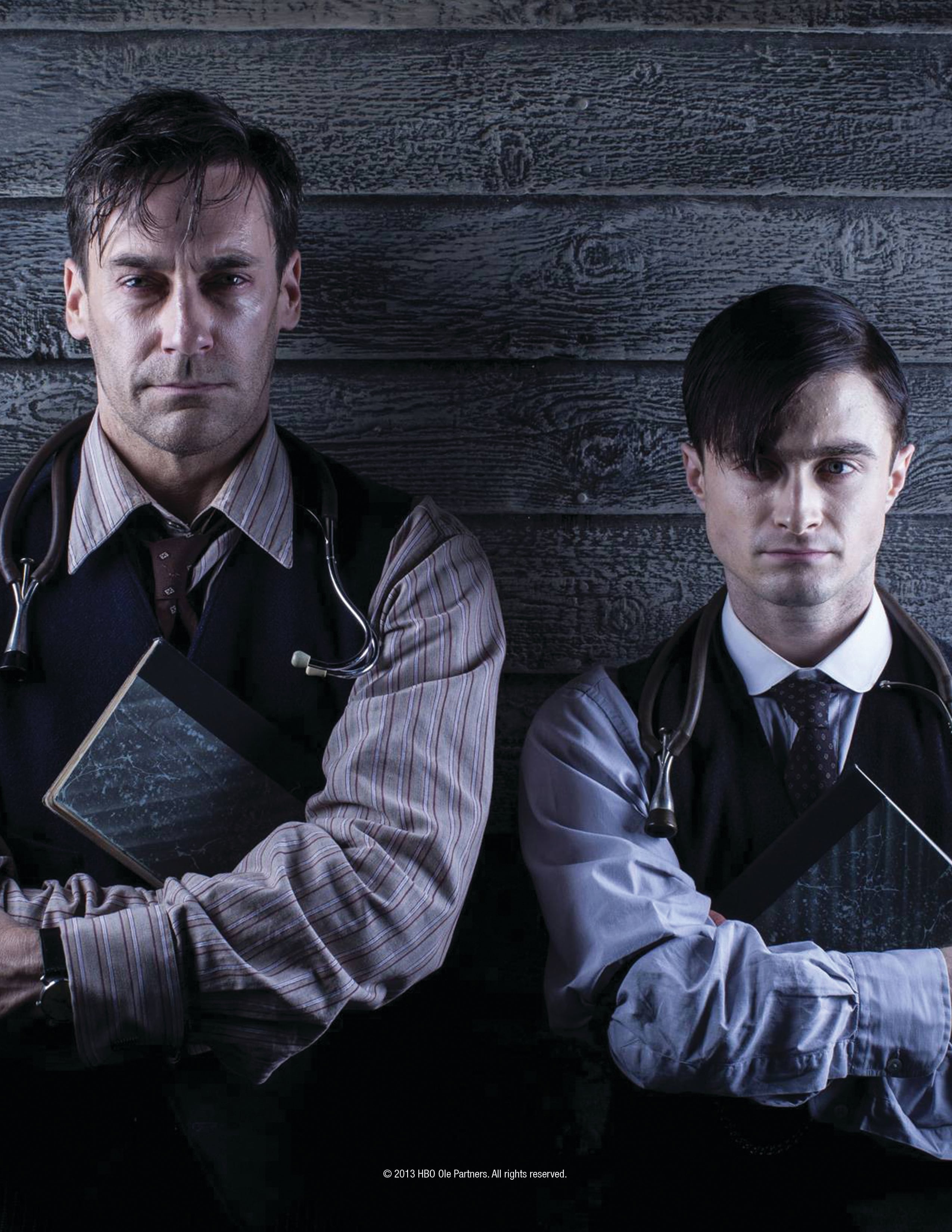 El ganador del Globo de Oro, Jon Hamm ( Mad Men ) interpreta el papel del médico en su adultez, que interactúa cómicamente con él mismo más joven, papel interpretado por Daniel Radcliffe (Harry Potter).