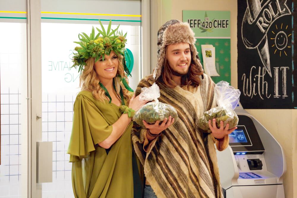 Entonces, para que su nuevo negocio resulte exitoso, Ruth y tres amigos deciden regalar puros de marihuana.