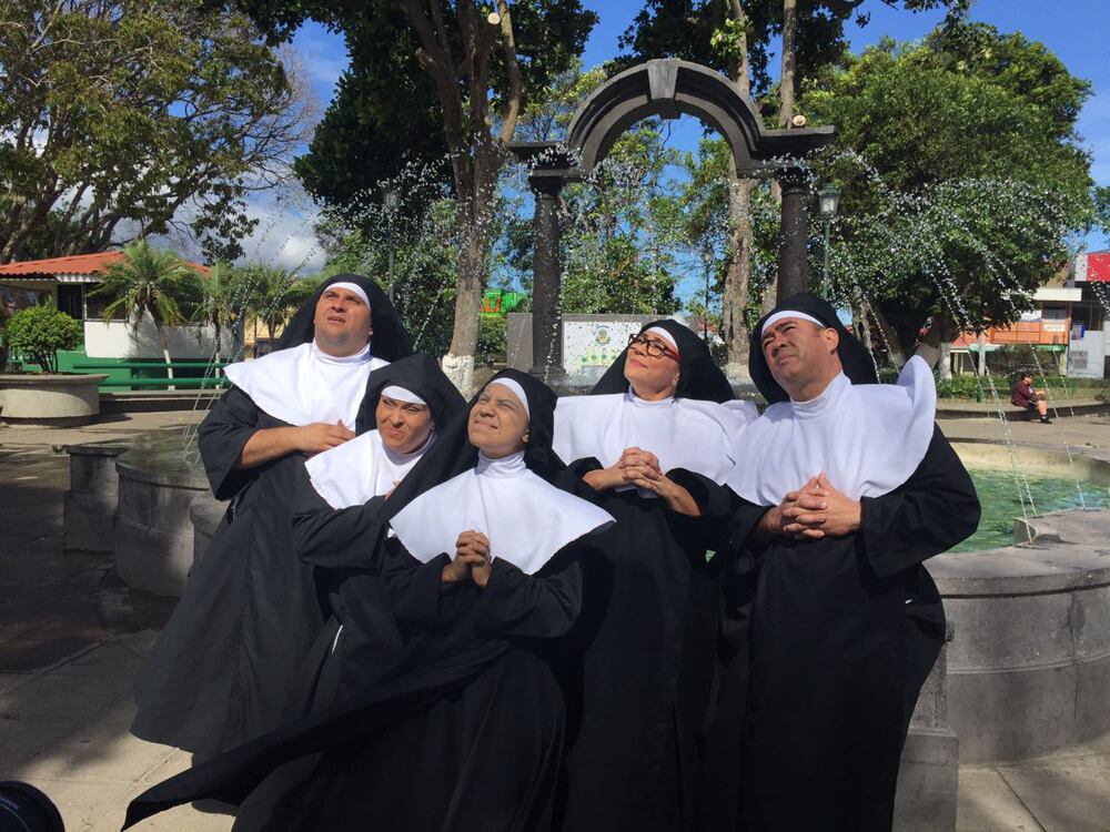 Por cierto, el grupo de actores pasó tremendo trance el día que fueron a tomar las fotografías para la promoción de la obra a las 6 a. m., en la Iglesia de Coronado. Resulta que llegaron vestidos de monjas para aprovechar el paisaje, ciertos ángulos de las afueras de la iglesia y ventanas que ayudaran como fondo; en eso estaban cuando de la nada apareció una señora que por poco los agarra a sombrillazos, diciéndoles que no se burlaran de la religión y con tal furia, que no los dejó ni explicar que se trataba de unas fotos para una obra de teatro.