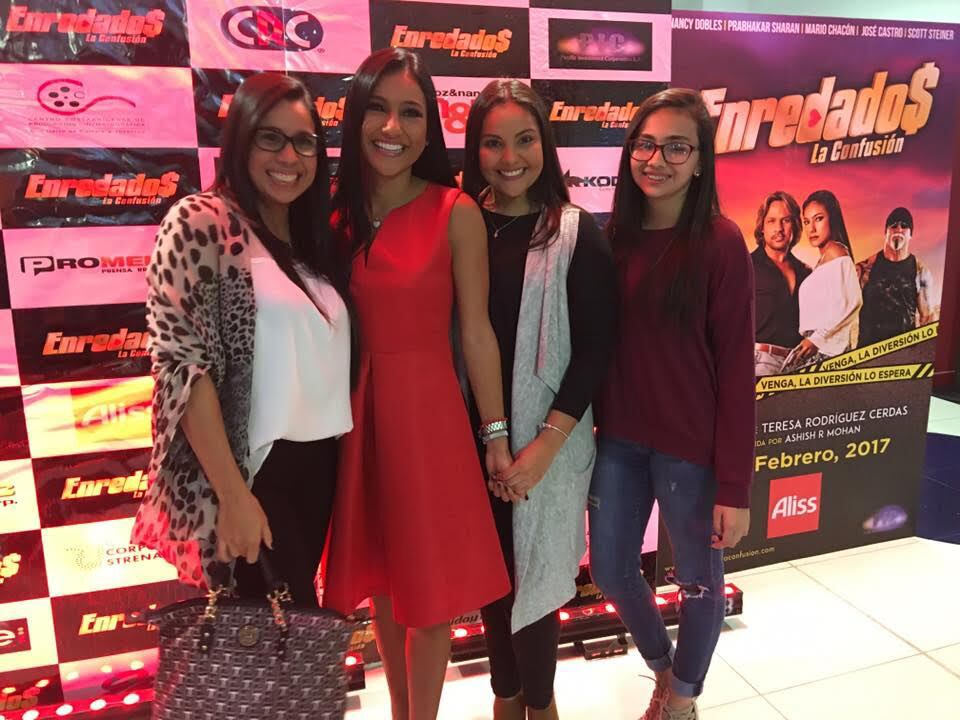 Esta escuela de cine (entre otros elementos) fusiona exóticos bailes, vistosas coreografías, espectaculares escenas de acción y, por supuesto cine de calidad; eso sí, es diferente al que usualmente consumimos por estos lados. A “La negra” (como cariñosamente le llaman sus compañeros de Teletica a Nancy) la vimos radiante y muy feliz de presentar este proyecto cinematográfico este lunes en Cinépolis, Terramall, donde estuvo acompañada por varios de sus coprotagonistas, por miembros de la prensa, farándula, amigos y, por supuesto, de su novio, el periodista Ignacio Santos Pasamontes.