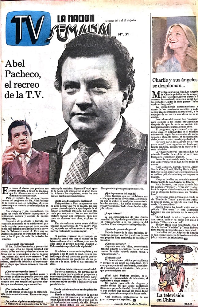 De 1976 al 2001, los prodigó en televisión en distintos programas, de los cuales el más recordado no tuvo nombre al inicio porque no le hacía falta: eran los “comentarios” del doctor Abel Pacheco (dirigió el Hospital Psiquiátrico Nacional en los años 70).