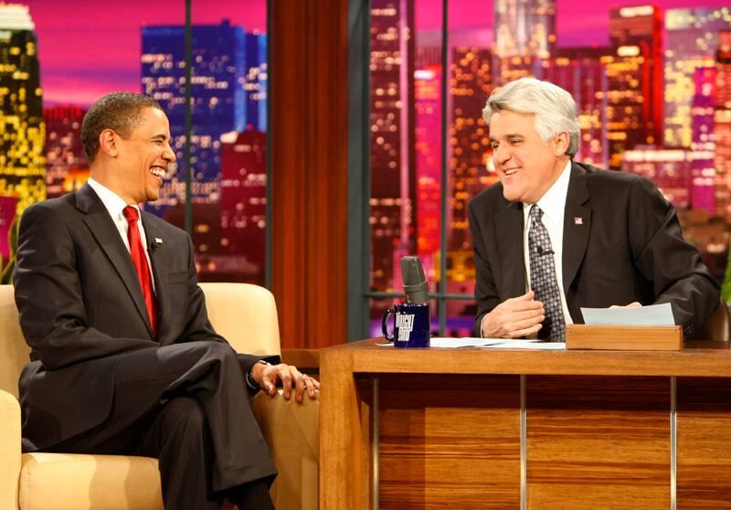 Entre muchos otros hitos, según reseña una nota del diario español El Mundo, en 2009 Leno fue el primer presentador que pudo saludar en un programa de televisión al primer presidente negro de Estados Unidos, Barack Obama.