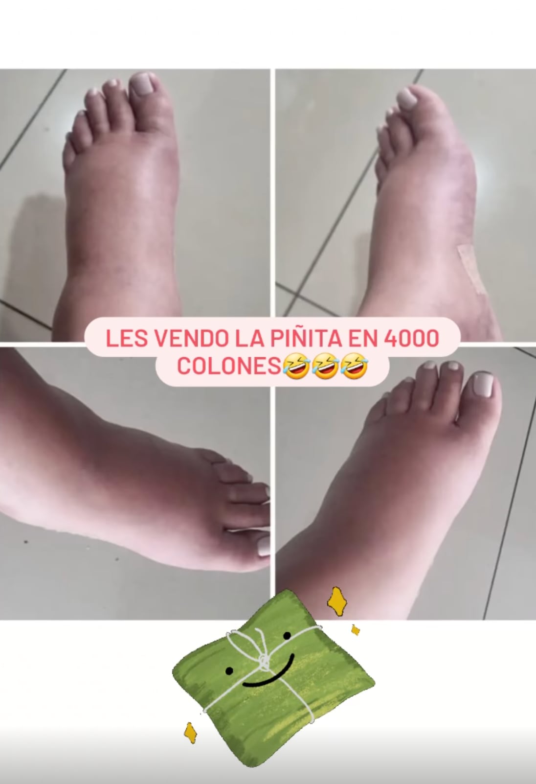 En numerosas ocasiones, Víquez compartió fotografías de sus pies donde se evidencian lo hinchados que están por cargar con su propio peso, así como el de los gemelos que crecen en su vientre. Este viernes no fue la excepción y con el chiste de “vendo la piñita en 4.000 colones”, la presentadora mostró cómo lucen sus pies mientras los comparó con unos tamales.