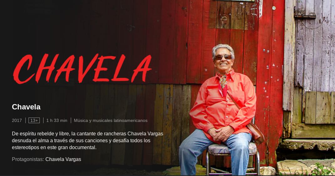 Así es como aborda el documental Chavela la historia de la cantante de rancheras que murió enamorada del México que la recibió con amor y la hizo una leyenda viviente. Dicha producción se estrenó en cines en el 2017, pero es hasta ahora que está disponible en la plataforma Netflix, por lo cual en días recientes muchos ticos han aprendido a conocer más de cerca a la Vargas.