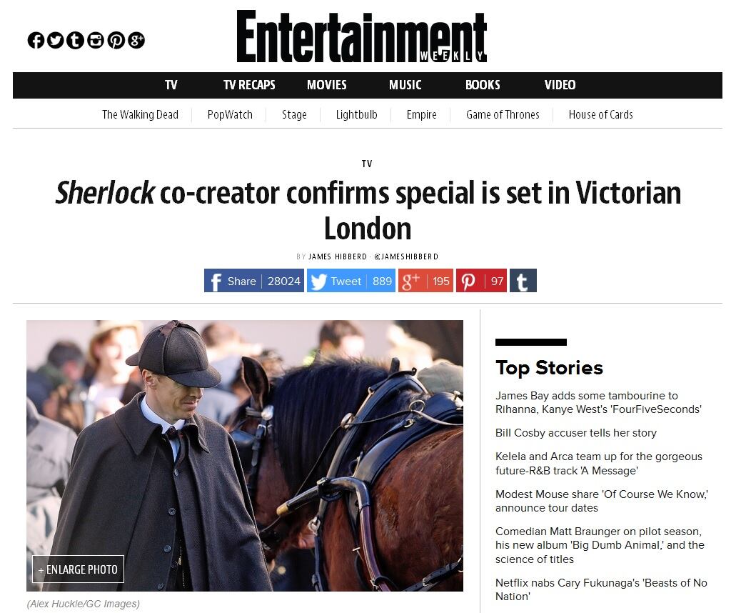 El pasado mes, las estrellas protagonistas de Sherlock, los actores Benedict Cumberbatch y Martin Freeman, fueron fotografiados mientras grababan en el set de rodaje, pero caracterizados con vestimenta del siglo XIX, algo que sorprendió a los medios pues esta serie es una adaptación contemporánea del detective del siglo XIX.