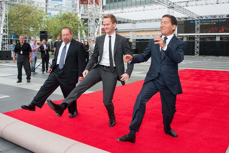 El actor Neil Patrick Harris –conductor del evento– fue el encargado junto a Kenneth Ehrlich y Bruce Rosenblum, productor y presidente de los Emmy Awards, de extender la alfombra roja por donde desfilarán las estrellas este domingo por la noche.