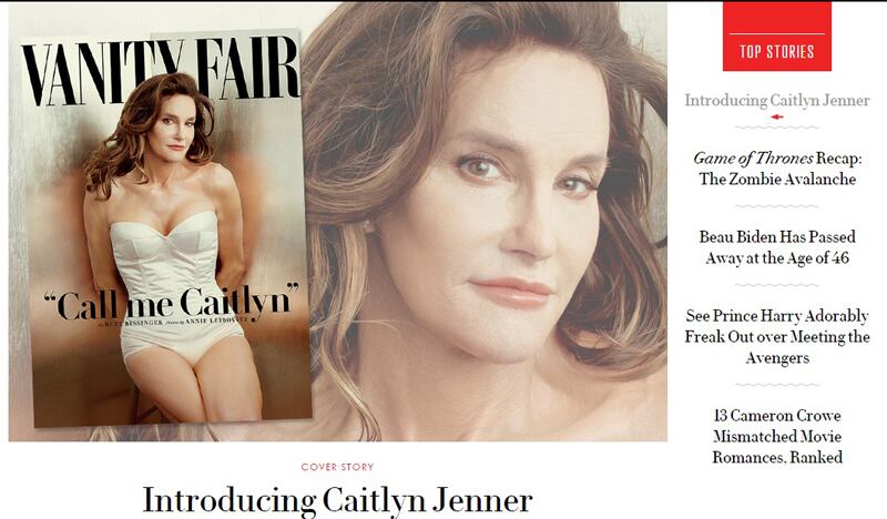 En la Vanity Fair de julio, la cara y cuerpo de Caitlyn ocupan la mayoría de la página de portada; en las 33 páginas del artículo completo –publicado como producto separado del número completo en su tienda digital– la tónica es distinta: Bruce Jenner lo hace.