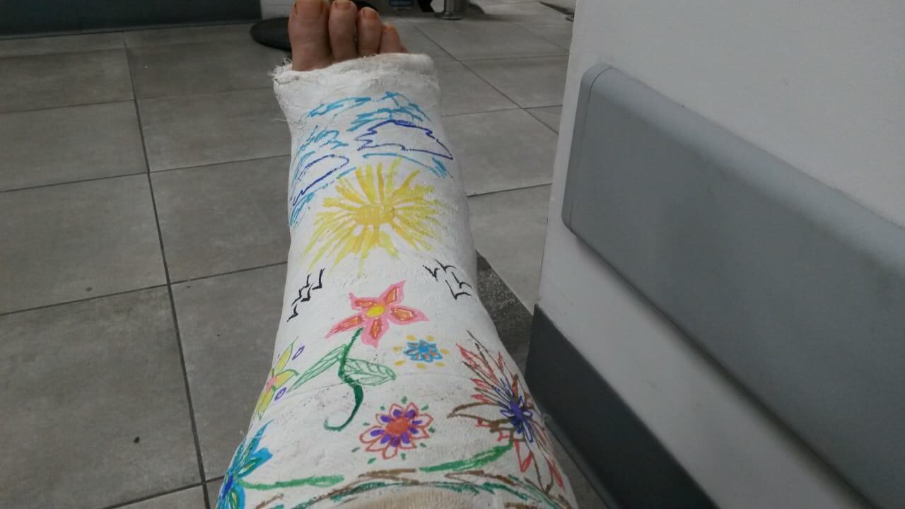 Por otro lado, Paer comentó que no le gustaba cómo lucía su yeso blanco, entonces decidió poner manos a la obra y pintarlo, para darle vida.
