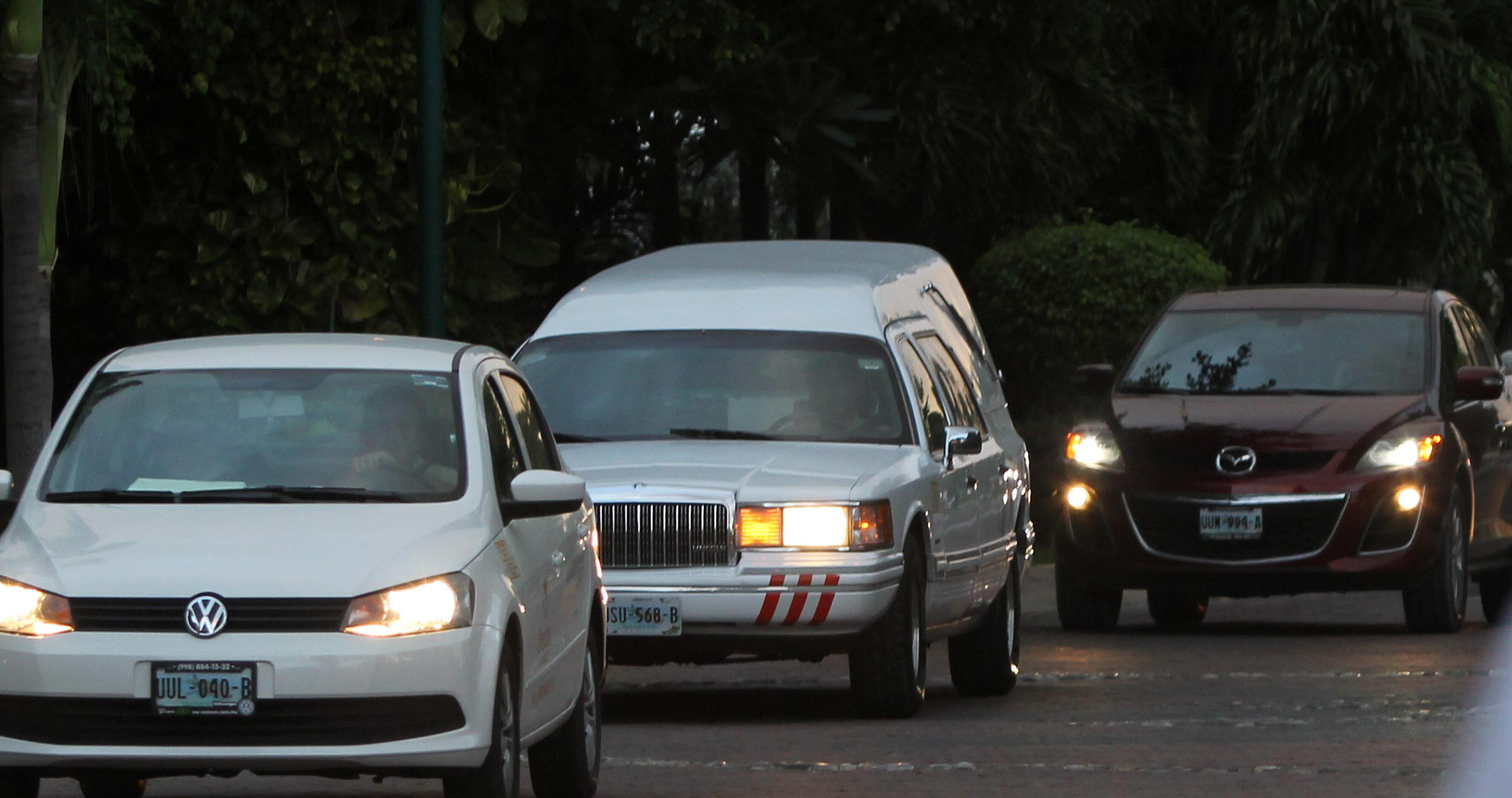 Una patrulla de la policía turística custodiaba el vehículo fúnebre junto con dos camionetas particulares que posiblemente viajaban los familiares. Cerraba la comitiva un vehículo de la funeraria.
